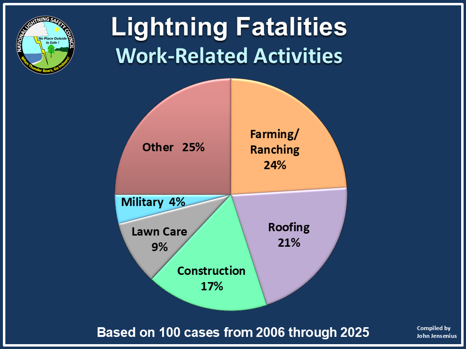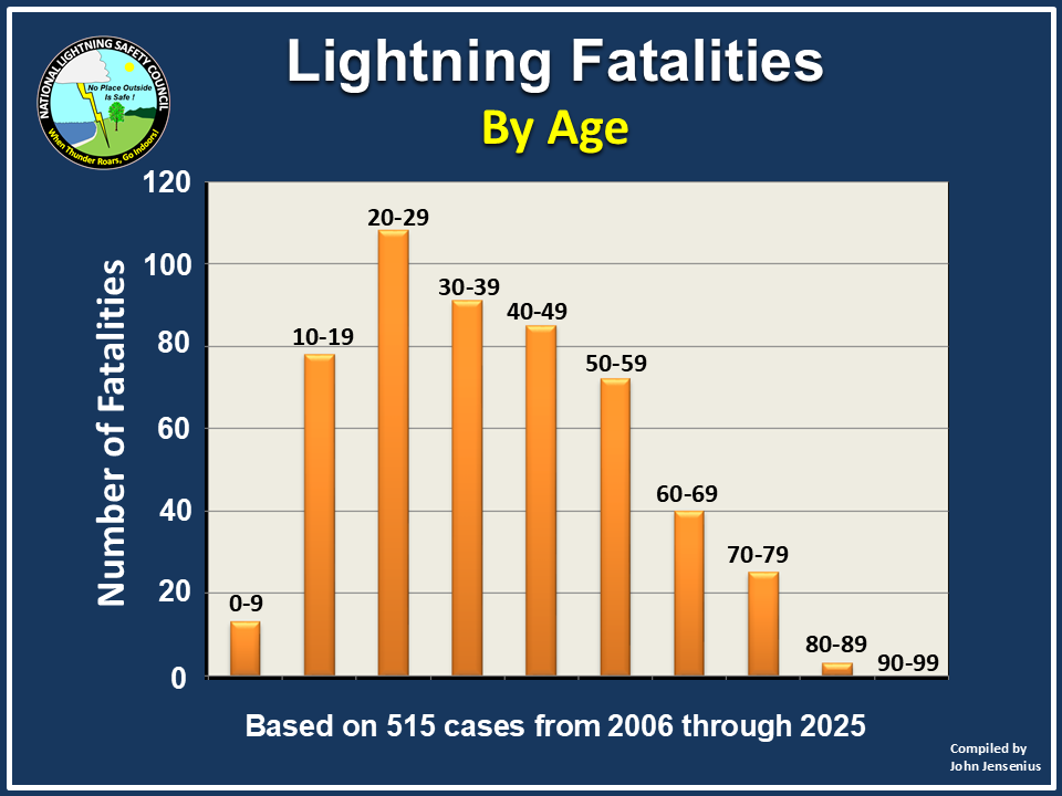 The following links provide summary graphs and charts of U.S. lightning fatalities during recent years.